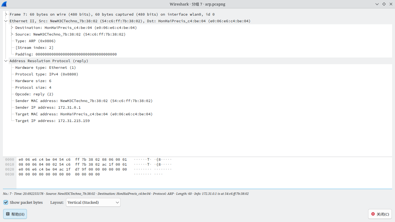 2. 请求与回复的的 ARP 报头均为 28 bytes对于报文请求的报文为 42 bytes回复的报文为60 bytes。