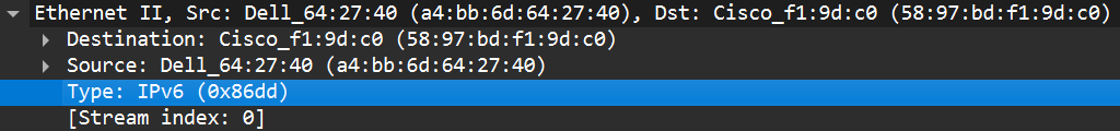 可以直观看出ipv6对应的分解键为0x86dd,tcp对应的分解键为6